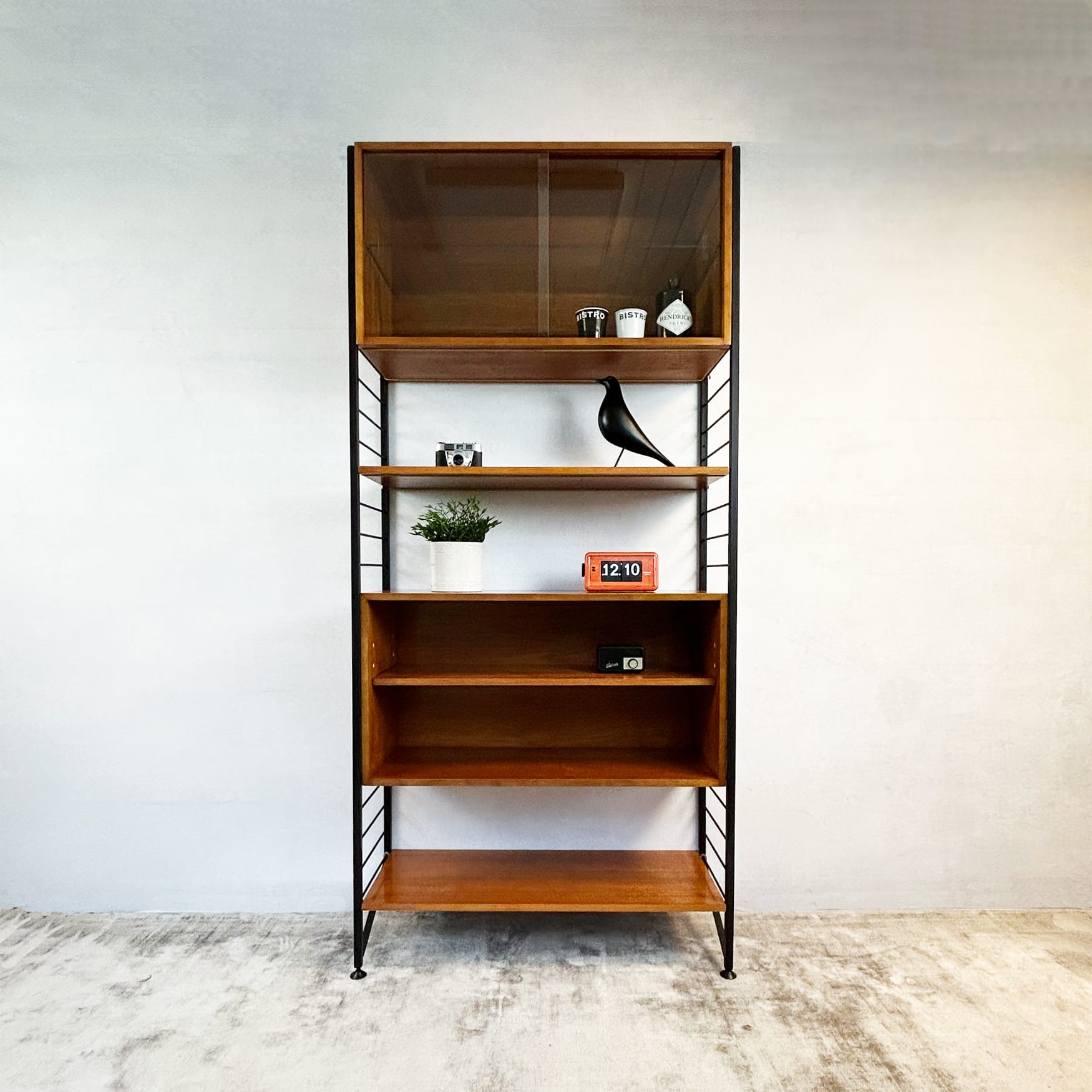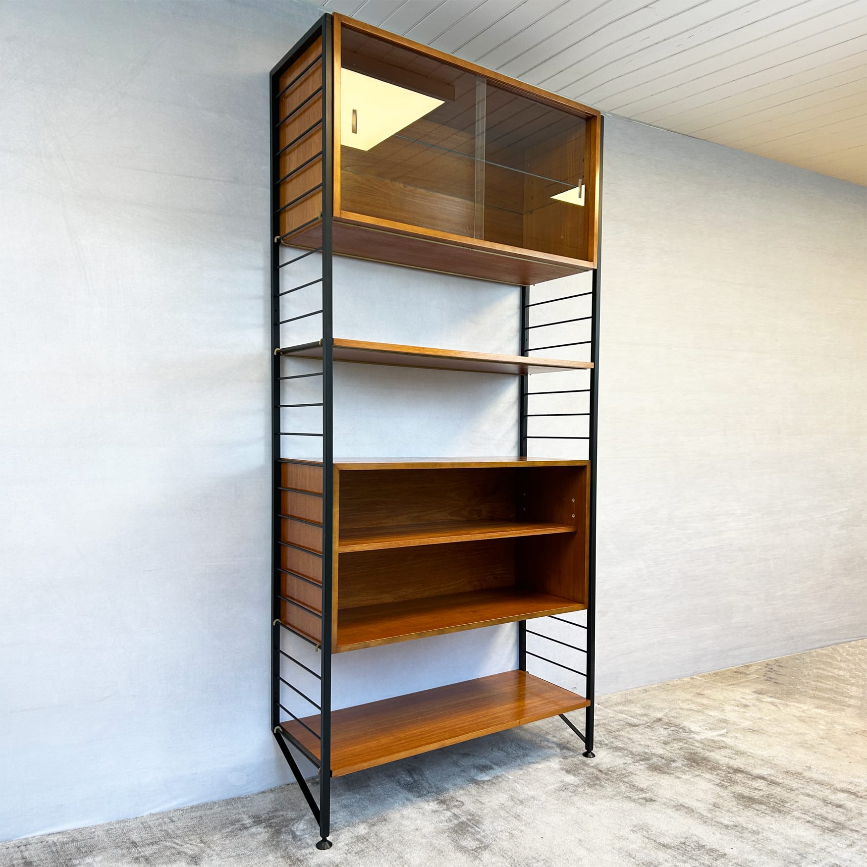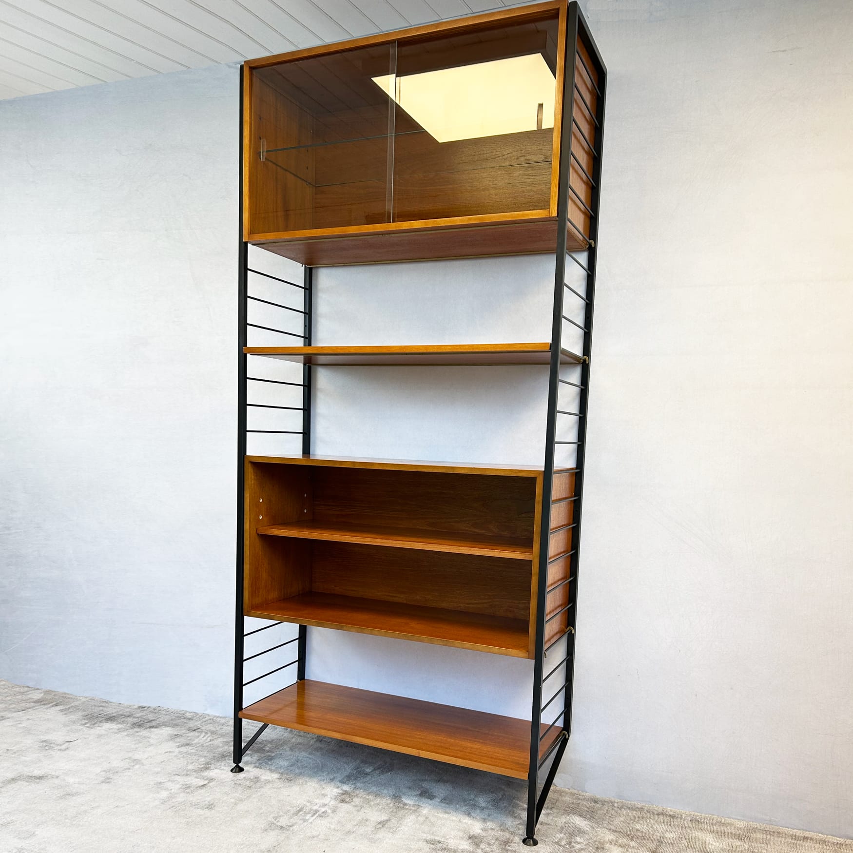 Ladderax modular shelving unit designed by Robert Heal for Staples. This single bay unit includes 2 display cabinets, three shelves, ten support rods and 4 anti-tip hooks to secure the individual units to the support ladders.